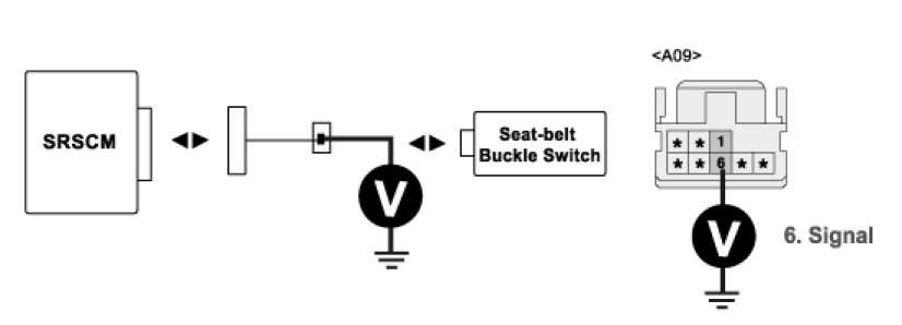 5. Measure voltage between terminal "6" of the Seat-belt Buckle Switch harness connector and chassis ground.