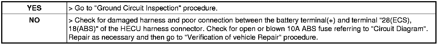 4. Measure voltage between terminal "28(ESC), 18(ABS)" of the HECU harness connector and chassis ground.