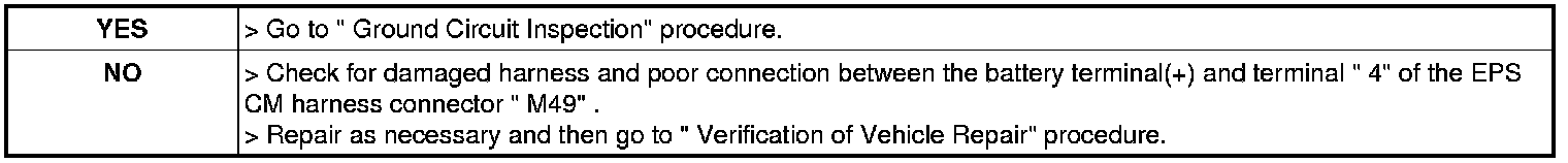 4. Measure voltage between terminal" 4" of EPS CM harness connector " M49" and chassis ground.