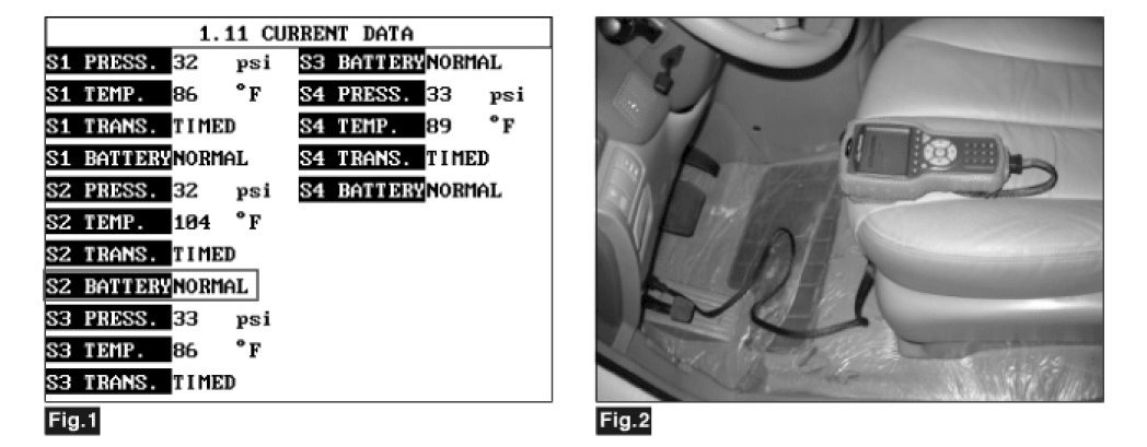 4. Monitor the parameter of "S2 BATTERY" on the 'TPMS exciter' or scantool.