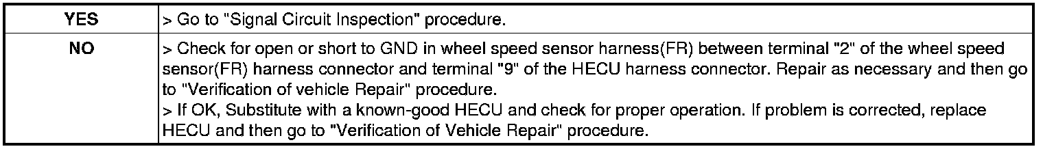 ABS/ESC - C1203 Wheel Speed Sensor Front-RH Open/Short - W/Harness Inspection