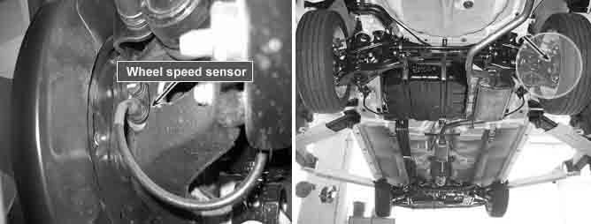The wheel speed sensor is the essential component the ABS ECU uses to calculate vehicle speed and to determine whether wheel lock occurs.