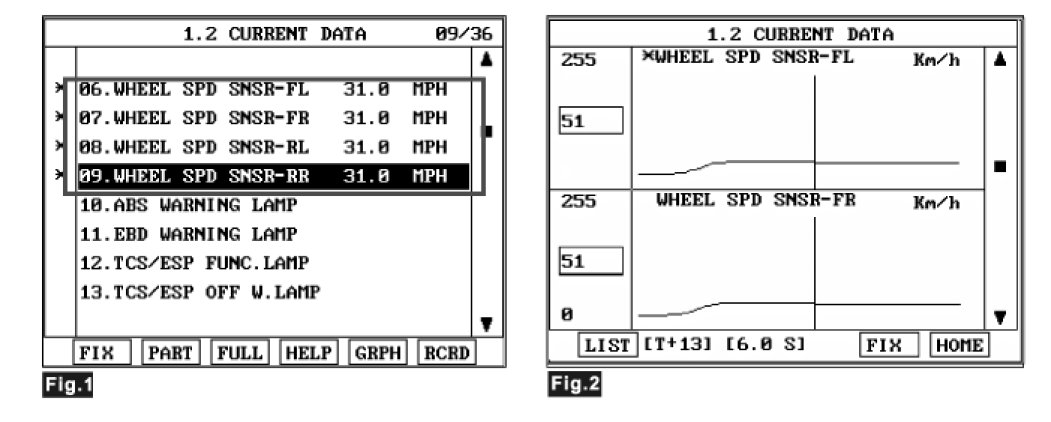 4. Monitor the "WHEEL SPD SENSOR-RR" parameter on the Scantool.
