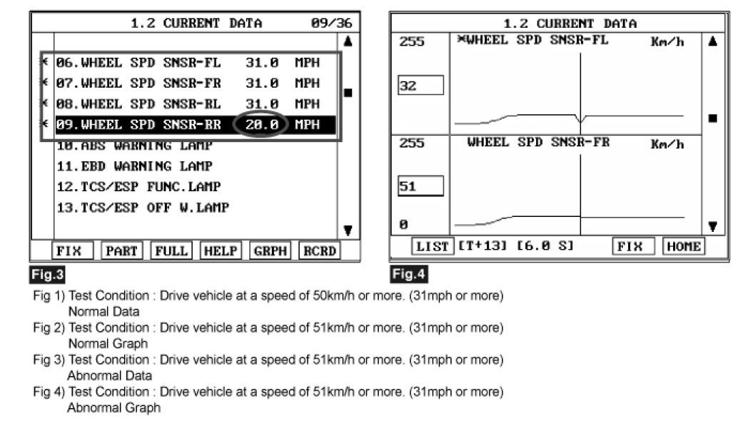 ABS/ESC - C1211 Wheel Speed Sensor Rear-RH Invalid/no Signal - Monitor Scantool Data