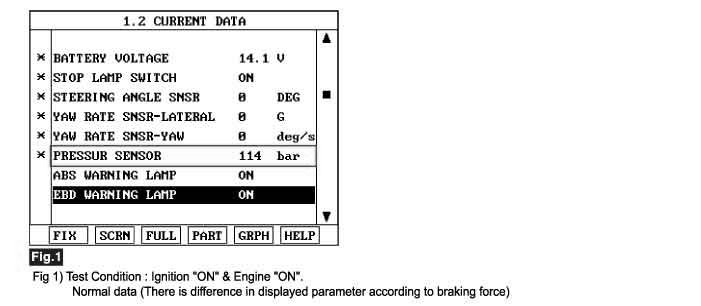 Specification : Approx. 60bar ~150bar (There is difference in displayed parameter according to braking force)