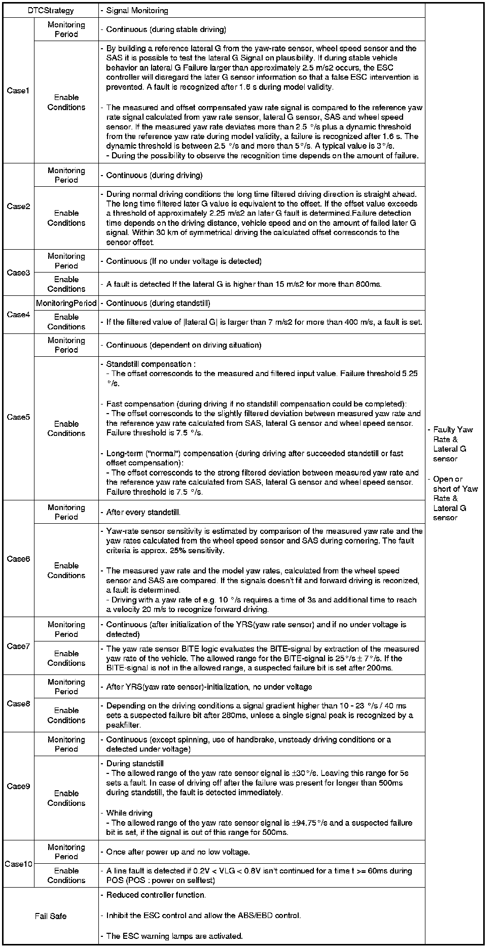 A yaw rate reference signal is calculated from the wheel speeds, the steering angle and the lateral acceleration signals to observe the yaw rate sensor signal.