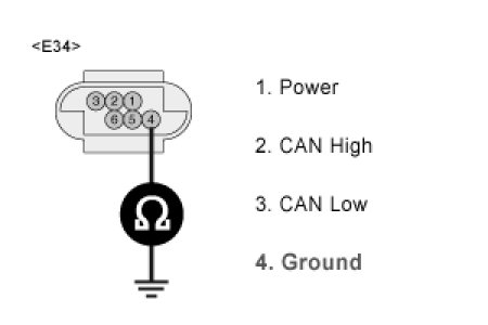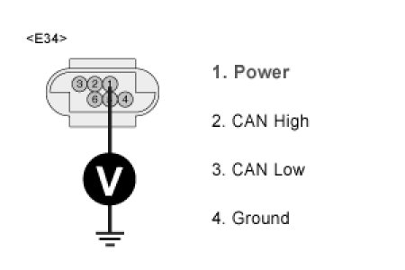 3. Measure resistance between terminal "4" of the Yaw Rate & Lateral G sensor harness connector and chassis ground.