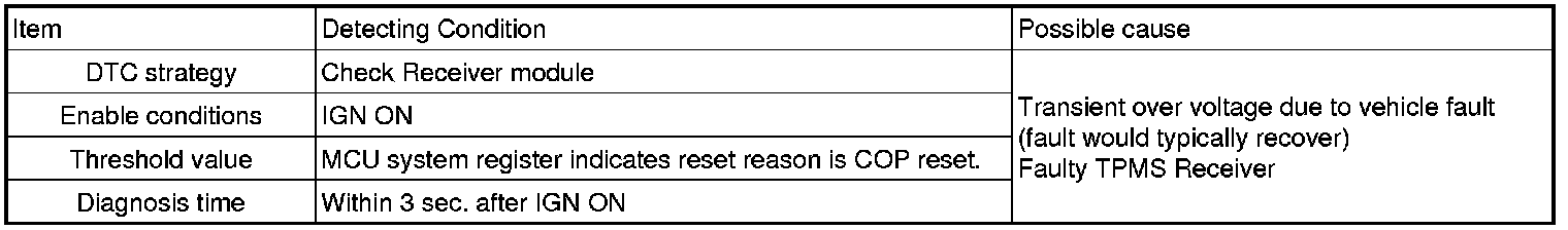 This DTC indicates that the receiver has detected an internal error. The most likely cause is TPMS Receiver failure.