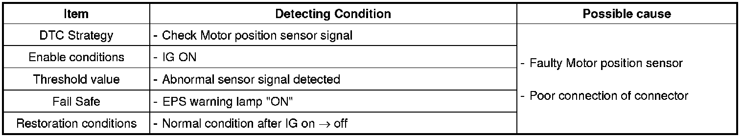 EPS CM sets this code and inhibits EPS if a data read from motor position sensor has an error.