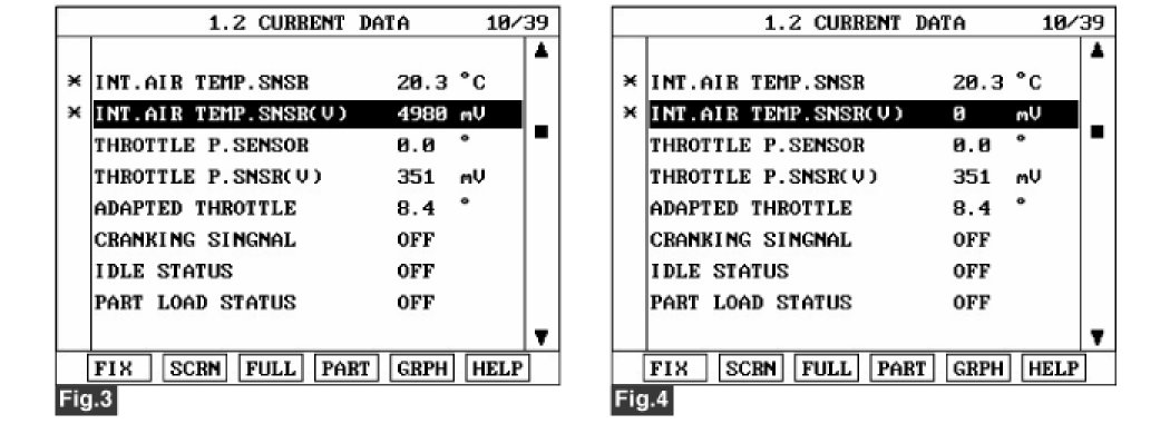 Fig 1,2) Signal decreases with increasing sensor temperature and increases with decreasing sensor temperature : Approx. 3769 mV at 19.5°C (at IG ON), Approx. 3574 mV at 24.0°C (at Idle)