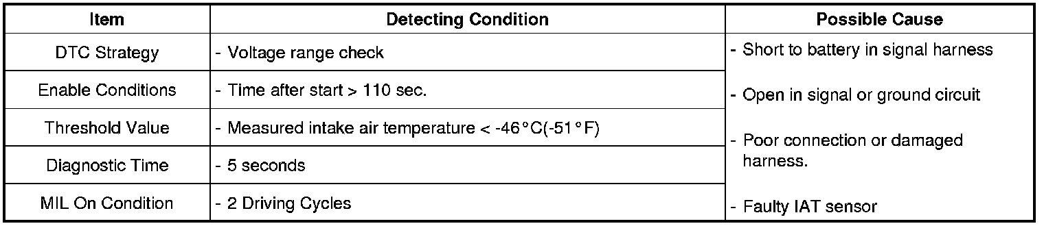 ECM sets DTC P0113 if the ECM detects signal voltage higher than the possible range of a properly operating IATS.