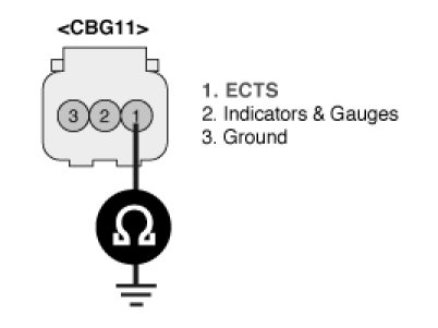 3. Measure resistance between terminal 1 of the sensor harness connector and chassis ground