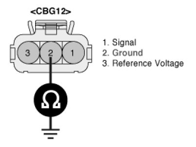 3. Measure resistance between terminal 2 of the sensor harness connector and chassis ground.