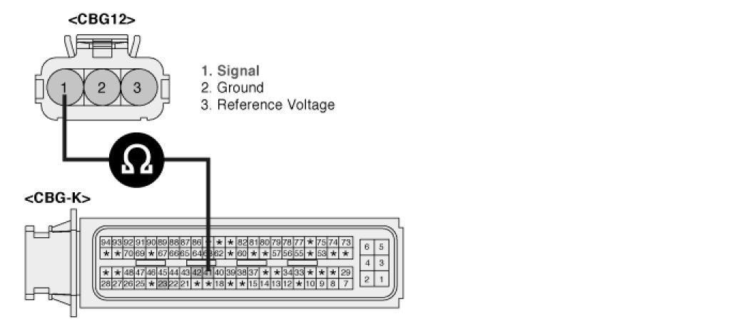 2. Measure resistance between terminals 1 of the sensor harness connector and 41 of the ECM harness connector