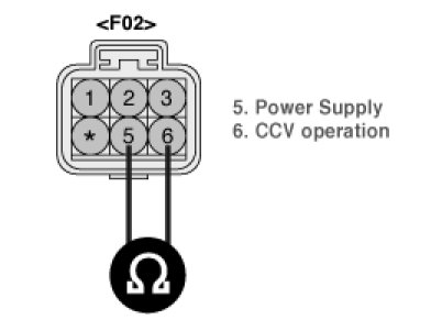 3. Measure resistance between terminals 5 and 6 of the CCV connector (Component side)