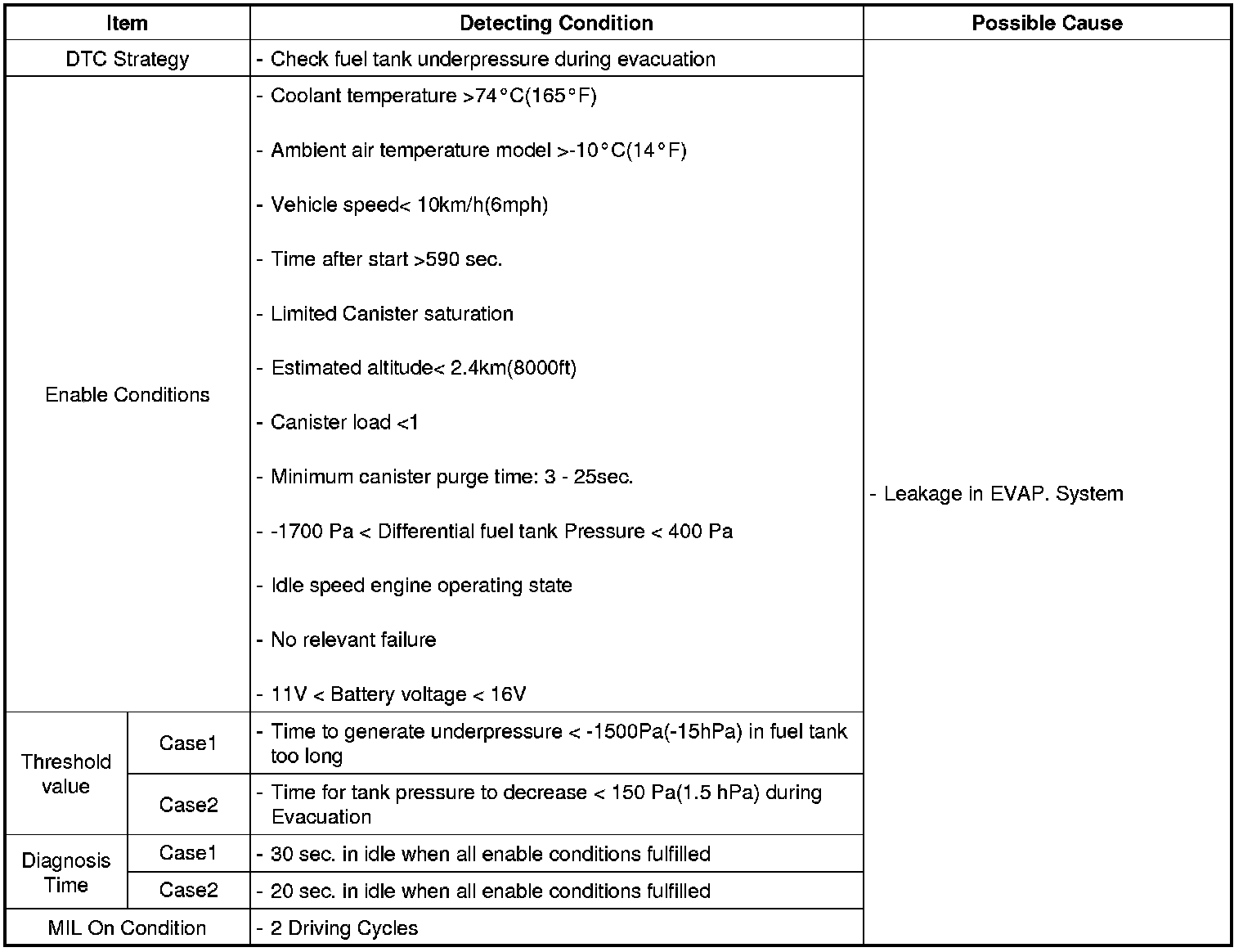 DTC Detecting Condition