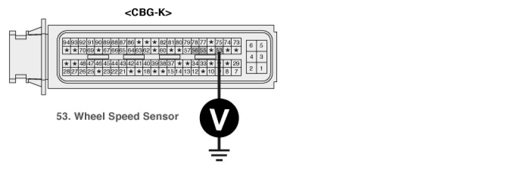 (2) Measure resistance between terminals 1 of the wheel speed sensor harness connector and 56 of the ECM harness connector.