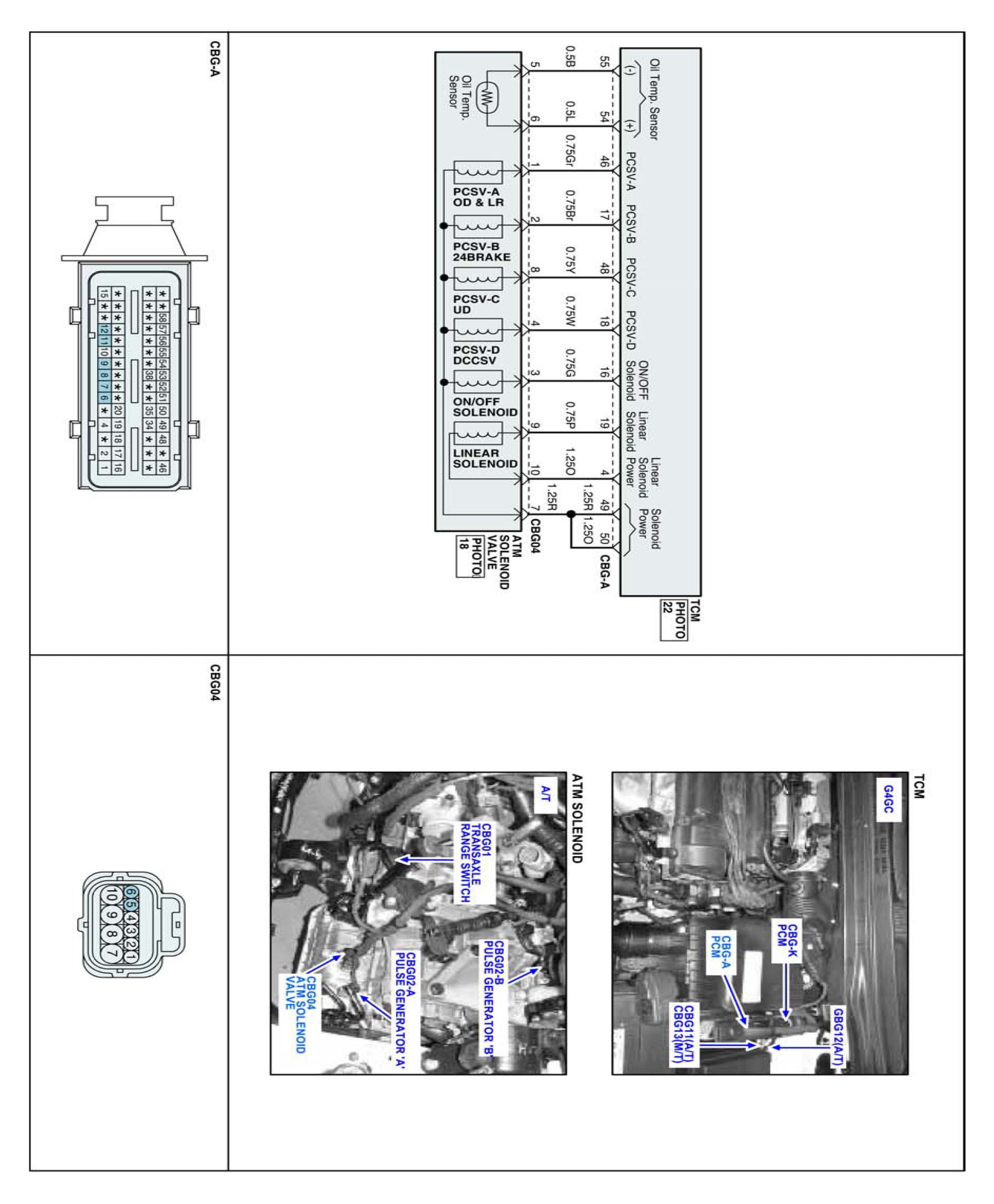 The automatic transmission fluid (ATF) temperature sensor is installed in the Valve Body. This sensor uses a thermistor whose resistance changes according to the temperature changes. The TCM supplies a 5 V reference voltage to the sensor, and the output voltage of the sensor changes when the ATF temperature varies. The automatic transmission fluid (ATF) temperature provides very important data for the TCM's control of the Torque Converter Clutch, and is also used for many other purposes.