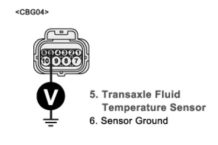 3. Measure the voltage between terminal "5" of the "TRANSAXLE FLUID TEMPERATURE SENSOR" harness connector and chassis ground.