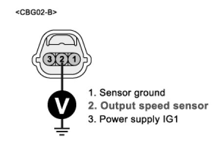 3. Measure voltage between terminal "2" of the OUTPUT SPEED SENSOR harness connector and chassis ground.