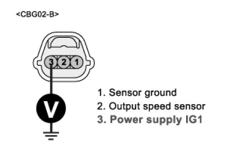 3. Measure voltage between terminal "3" of the OUTPUT SPEED SENSOR harness connector and chassis ground.