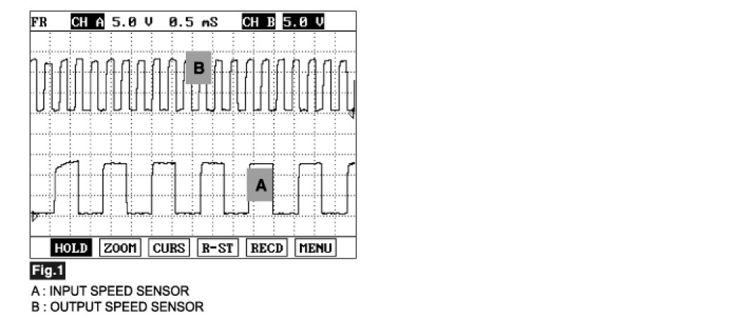 The value of the input shaft speed should be equal to the value of the output shaft speed, when multiplied by the 4th gear ratio, while the transaxle is engaged in the 4th gear. For example, if the output speed is 1,000 rpm and the 4th gear ratio is 0.712, then the input speed is 712 rpm.