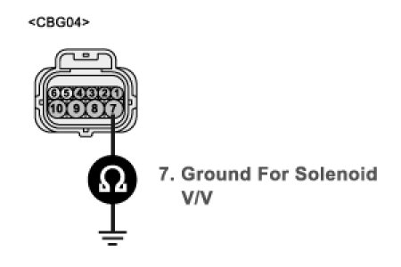 3. Measure resistance between terminal "7" of the ATM SOLENOID VALVE harness and chassis ground.