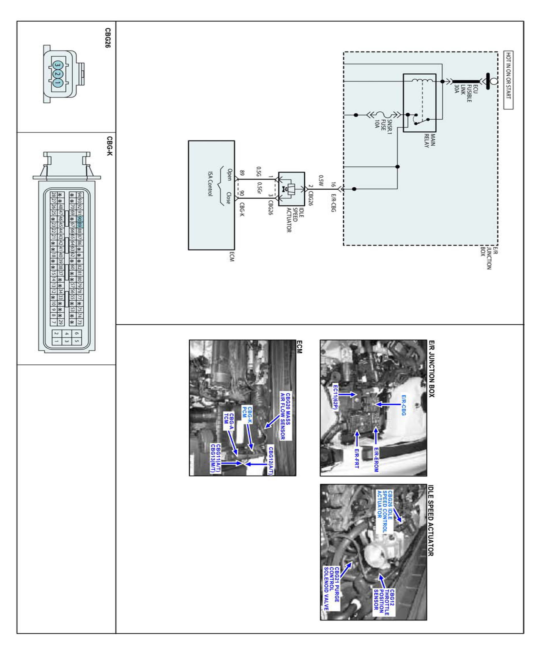 The Idle Speed Control Actuator (ISCA) is installed on the intake manifold and controls the intake airflow that is bypassed around the throttle plate to keep constant engine speed when the throttle valve is closed. The function of the ISCA valve is to maintain idle speed according to various engine loads and conditions, and also to provide additional air during starting. The ISCA valve consists of an opening coil, a closing coil, and a permanent magnet. Based on information from various sensors, the ECM controls both coils by grounding their control circuits. According to the control signals from the ECM, the valve rotor rotates to control the by pass airflow into the engine.