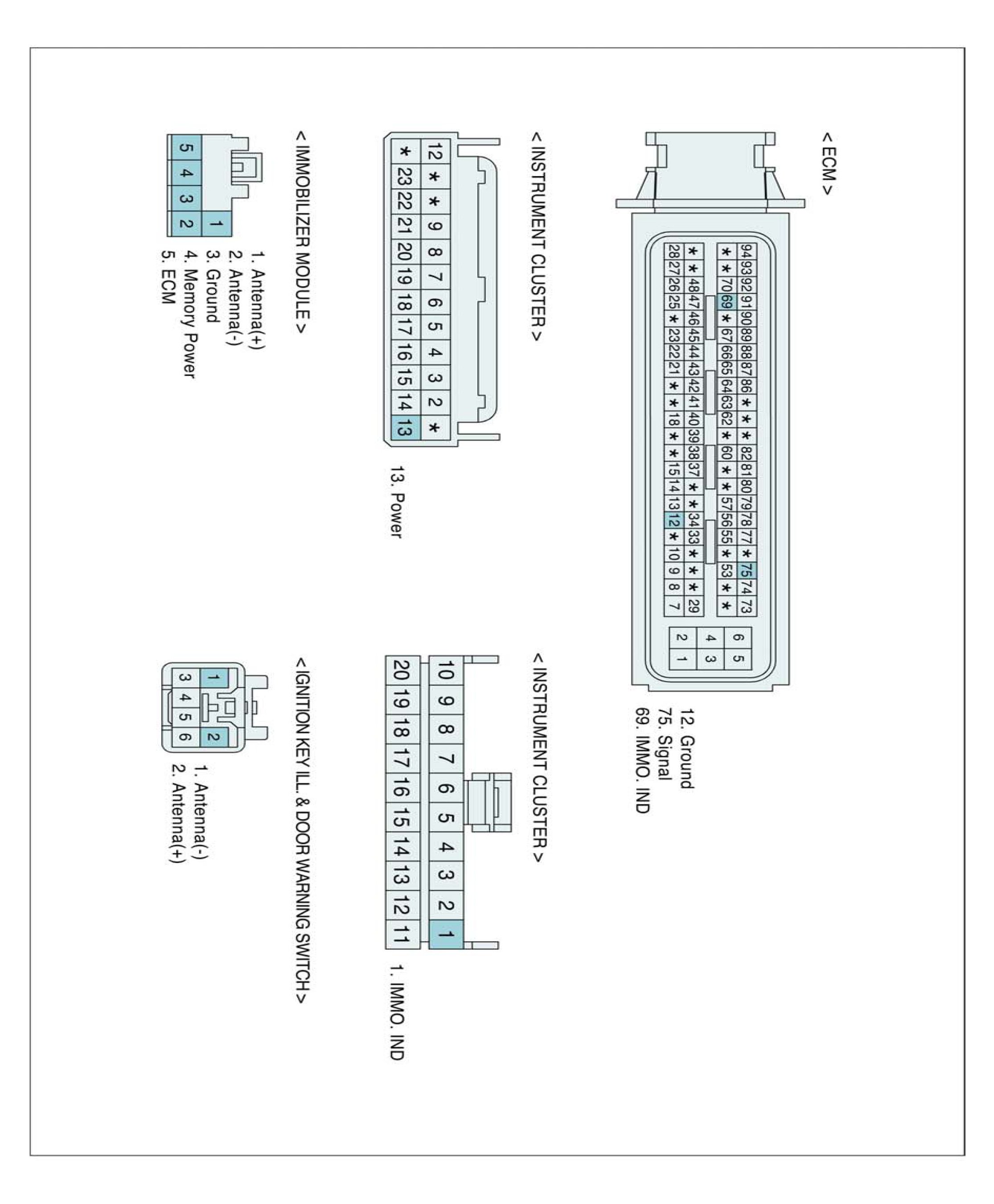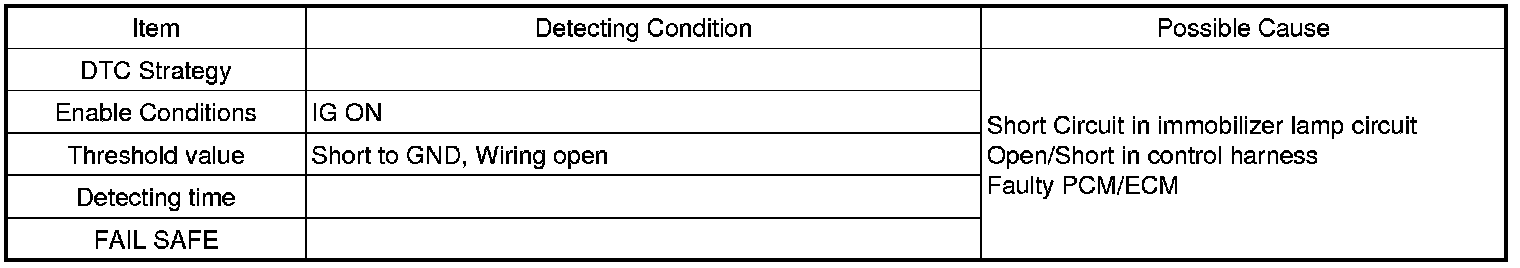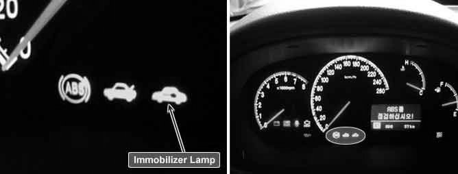 When driver inserts key and IGN "ON", Immobilizer informs status of system and result of Authentication by blinking of immobilizer lamp on instrument cluster. through Authentication procedure immobilizer lamp keep lighting up till engine starts. In normal status. Immobilizer lamp lights up for 30 sec Right after ignition "ON". If there's any fault in immobilizer system or in Authentication, lamp blinks 5 times after ignition "ON".