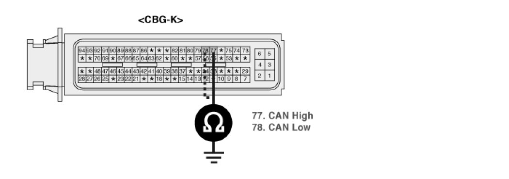 3. Measure resistance between terminals 77 and 78 of the ECM harness connector.