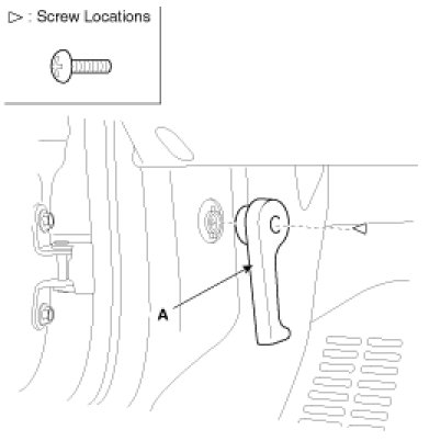 1. After loosening the mounting screw, then remove the hood release handle (A).