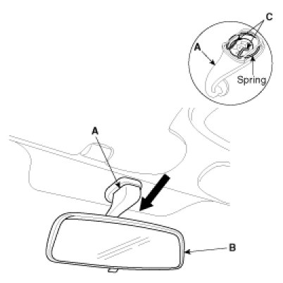 Make sure the spring mounting bracket (C) of the mirror not to be damaged.