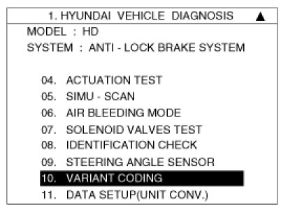 - If the warning lamp(ESC, EBD, ABS) is illuminated, follow the "Variant coding" again.