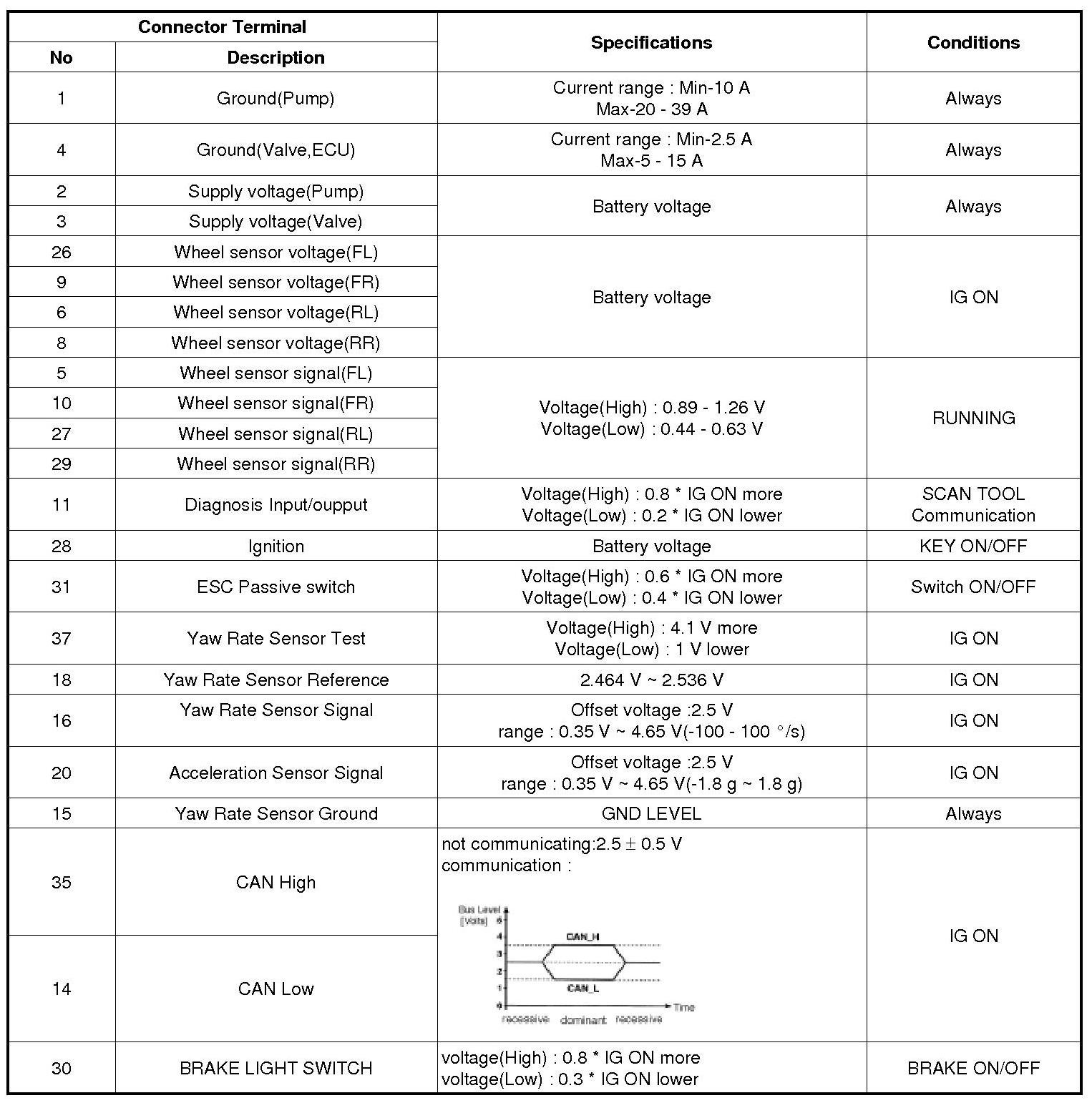 Pinout Values and Diagnostic Parameters