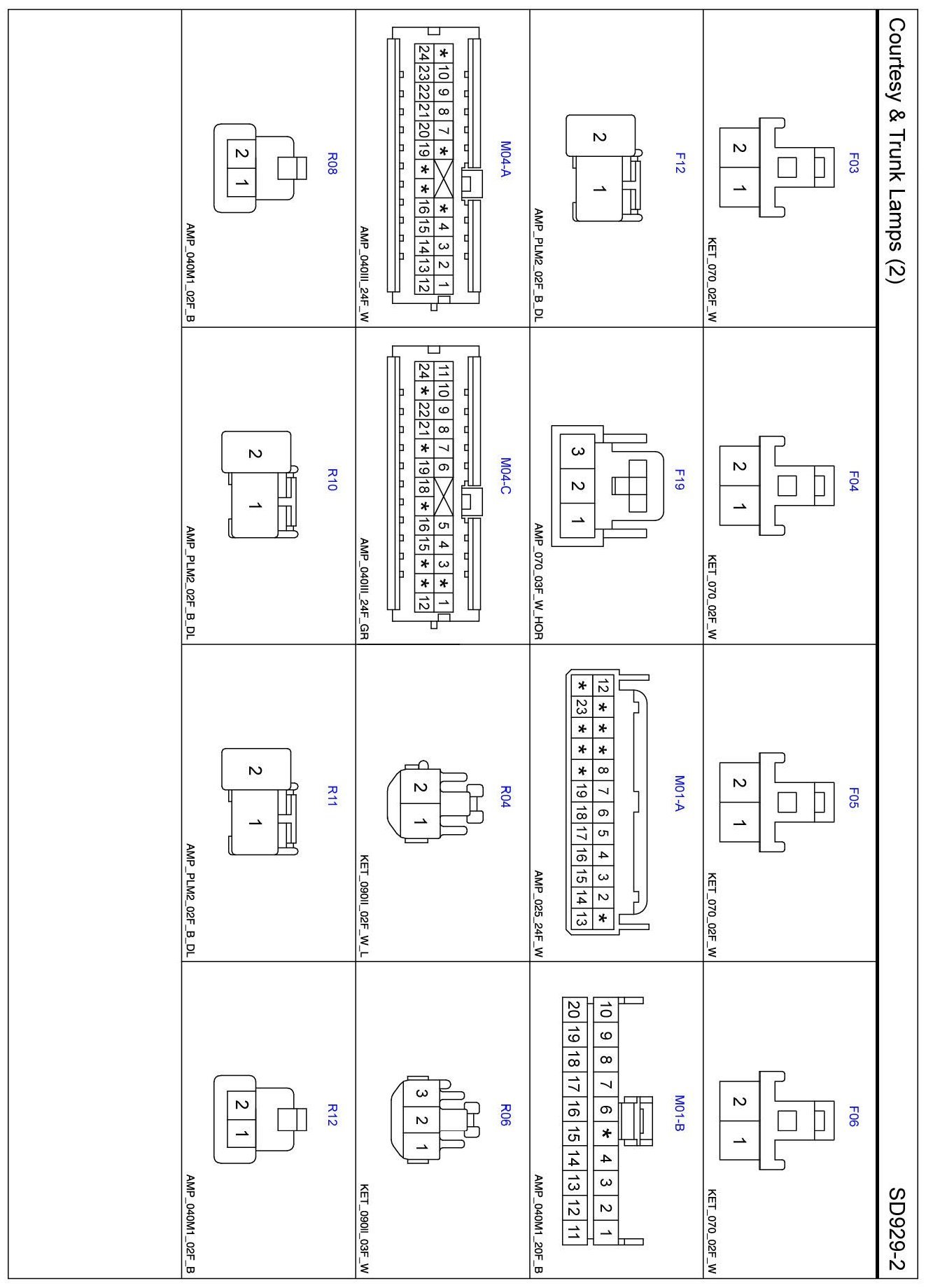 Courtesy & Trunk Lamps (2) Connector Pin Outs: