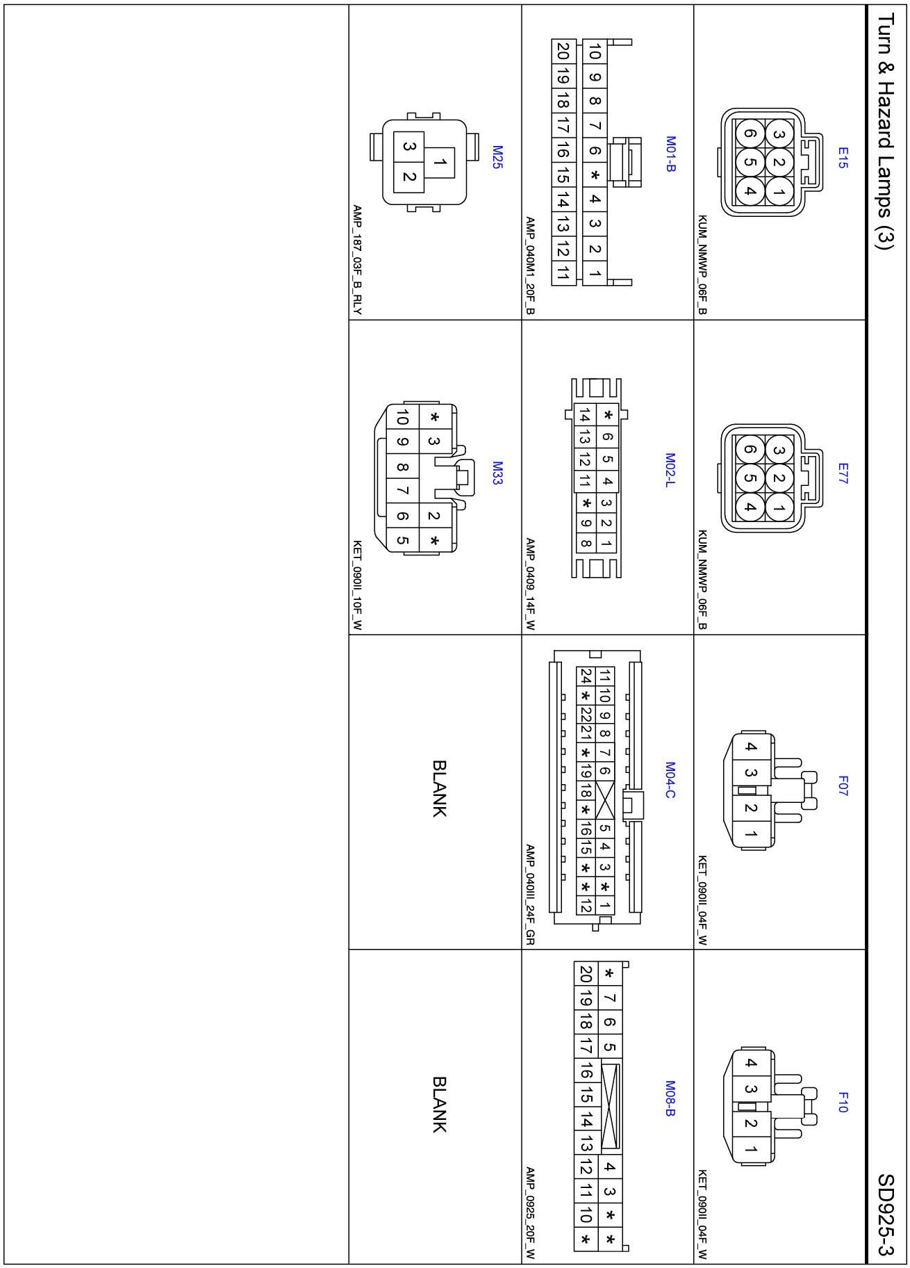 Turn & Hazard Lamps (3) Connector Pin Outs: