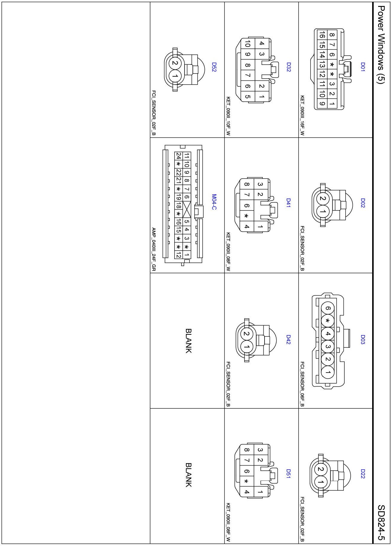 Power Windows (5) Connector Pin Outs: