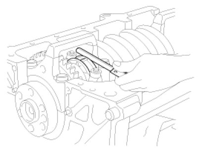 Using a dial indicator, measure the thrust clearance while prying the crankshaft back and forth with a screwdriver.