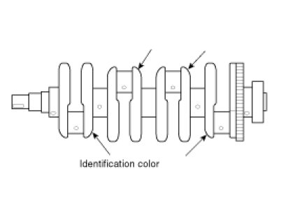 (6) If the plastigage measures too wide or too narrow, remove the upper half of the bearing, install a new, complete bearing with the same color mark (select the color as shown in the next column), and recheck the clearance.