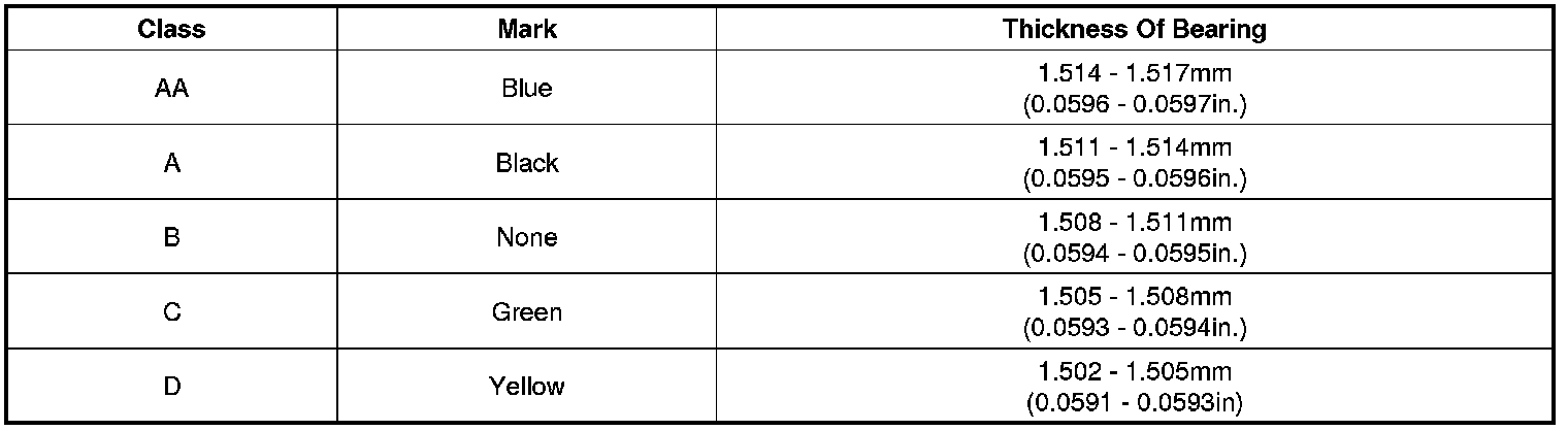 (7) If the plastigage shows the clearance is still incorrect, try the next larger or smaller bearing (the color listed above or below that one), and check clearance again.