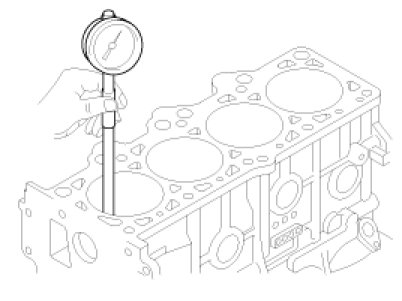 Using a cylinder bore gauge, measure the cylinder bore diameter at position in the thrust and axial directions.