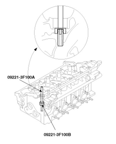 1. Using the SST(09221-3F100A), withdraw the old valve guide toward the bottom of cylinder head.
