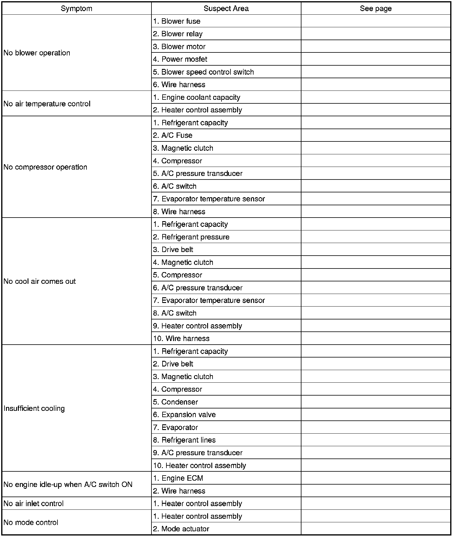 Use the table below to help you find the cause of the problem. The numbers indicate the priority of the likely cause of the problem. Check each part in order. If necessary, replace these parts.