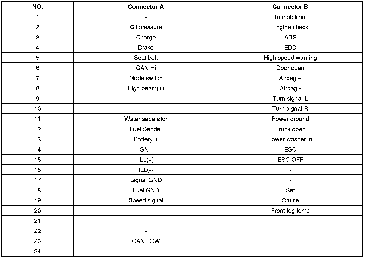 Instrument Cluster Connector Pin