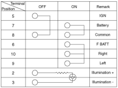 4. Operate the switch and check for continuity between terminals with an ohmmeter.