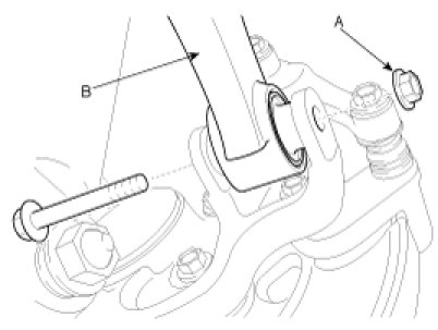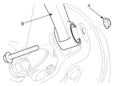 7. Install the upper arm (B) from the carrier assembly , then tighten the nut (A).