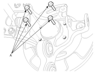 2. Install the carrier assembly (A) to the trailing arm, then tighten the mounting bolts.