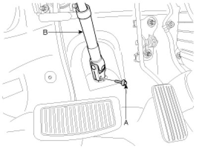 1. Install the steering column & universal joint assembly by tightening the bolts (B) and nuts (A).