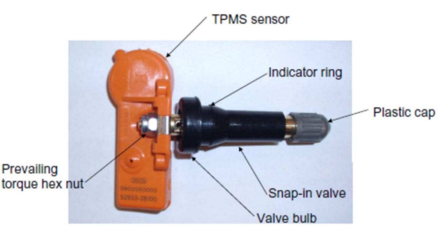 g. Lear Snap-In ValvesBeginning with 2010 Santa Fe, a Lear TPMS valve does not use a nut to mount to the wheel. These new valves are "snap-in."