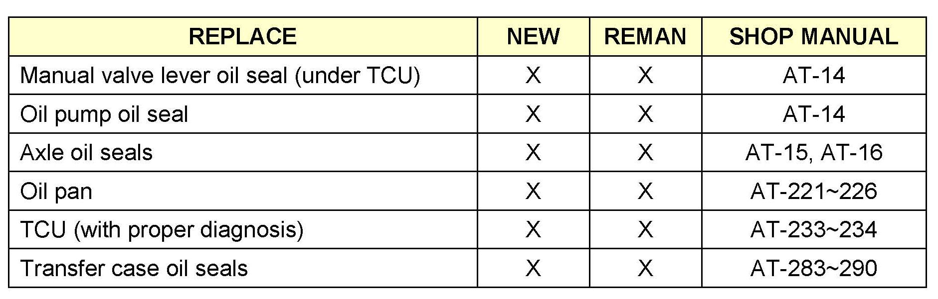 The ATM Diagnosis and Certification Course (# SVCAT28) provides detailed instructions on how to properly diagnose and when to repair or replace an ATM. DPSM approval is necessary when installing remanufactured transaxles if your dealership does not currently employ a technician who has completed this course.